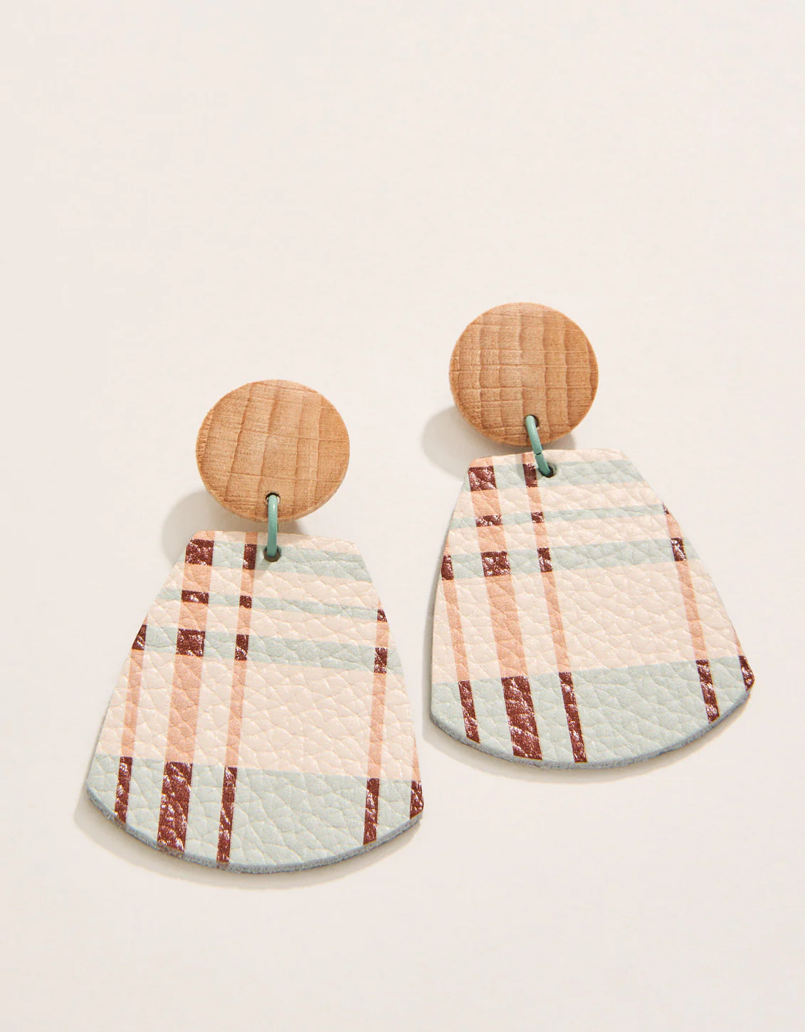 Añade volumen y color a cualquier look con nuestros pendientes Kalalanta a cuadros. Estas bellezas únicas presentan cuero, postes de madera y un baño de oro mate texturizado de 18 kt.
