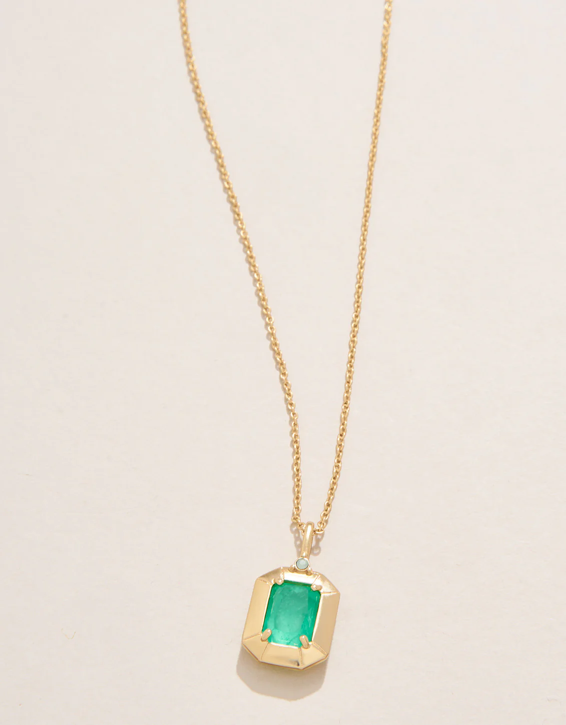 Nuestro collar Petite Chateau presenta una piedra de vidrio facetada con un intrincado marco bañado en oro mate de 18 kt y rematado con un cristal de ópalo del Pacífico. Un clásico lleno de color que no dejarás de lucir en tu joyero.