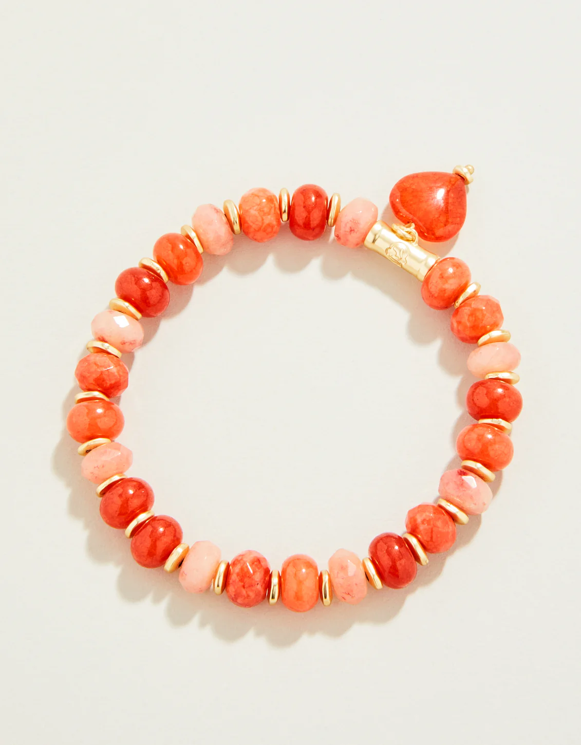 En vibrantes tonos rojos y rosas, nuestra pulsera elástica de piedras de 8 mm te encantará. Con jade teñido natural y cuentas de metal chapadas en oro mate de 18 kt.
